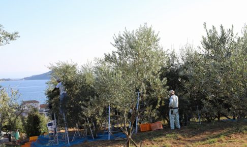 今日も朝からオリーブの収穫を行っている 農園スタッフと、 季節のお手伝いさん^^ 脚立に上り、木の高い部分を収…