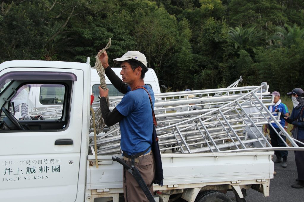 農園スタッフ日岡さんが真剣な表情で、支持します!