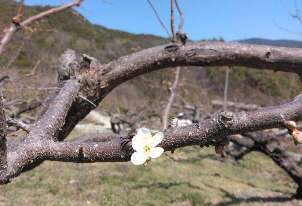 すもも畑では、