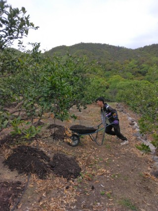 すももやみかんの畑に配ります!