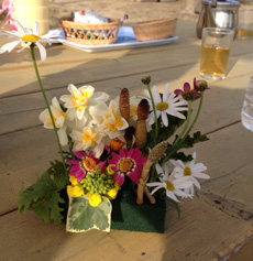 島のあらゆるところに咲いている草花を飾るのも
