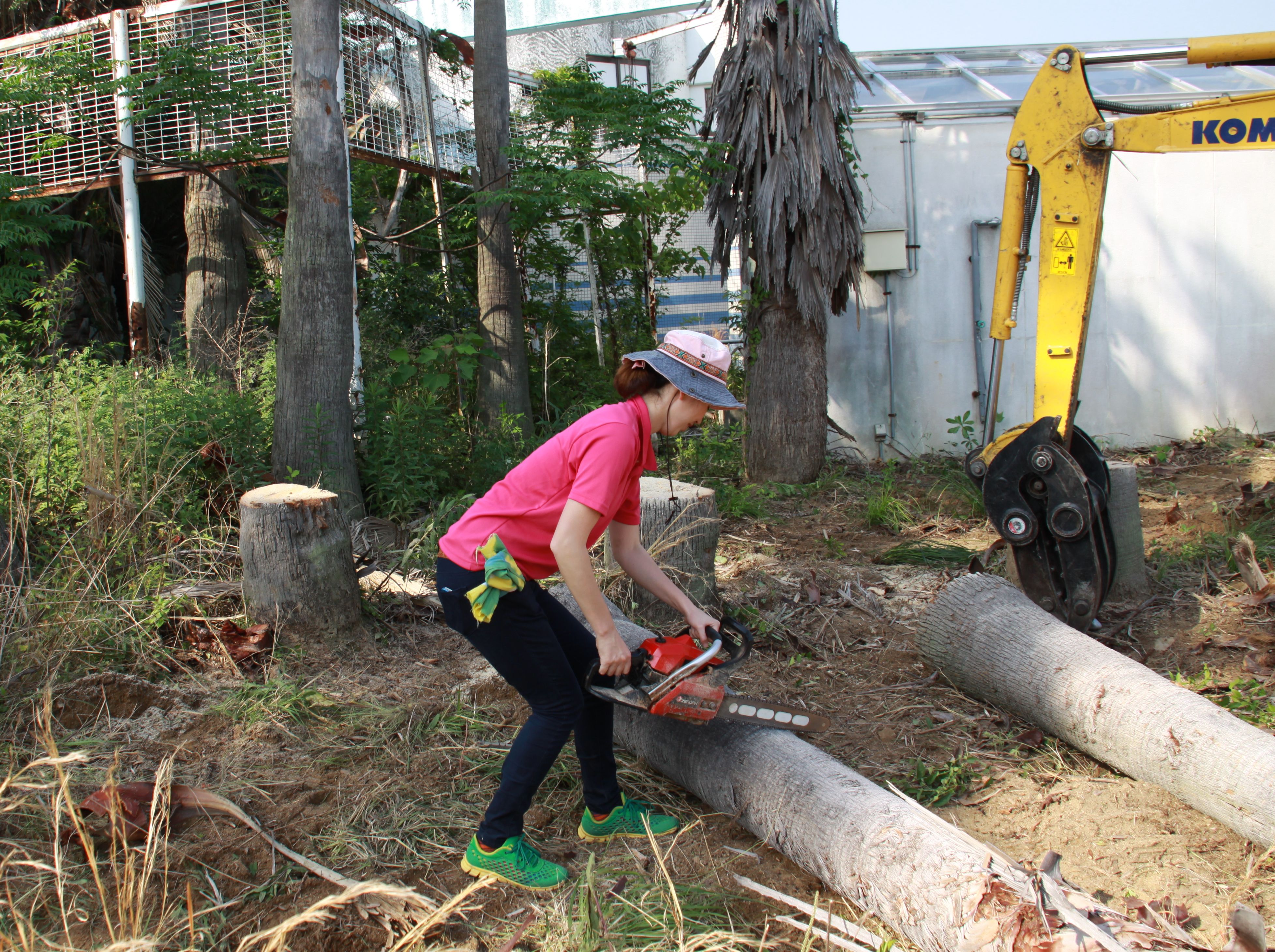 さらに運びやすいように細かく切断していくスタッフ三宅。