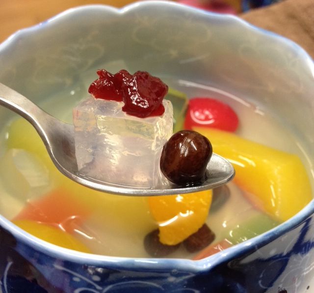 「どら焼き」に「わらび餅」、「あんみつ」をお皿に乗せ、