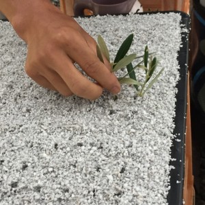 ほどよい間隔をあけて挿し木していく、この作業。。。