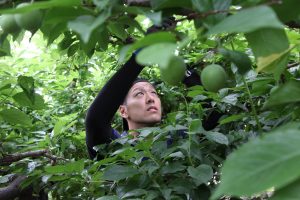 コンテナいっぱいに入った果実を、道沿いに持ち上げるのも一苦労^^;