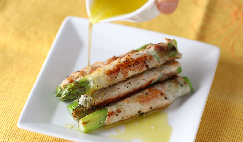 - アスパラに豚肉を巻いて、塩コショウし、フライパンで焼く。