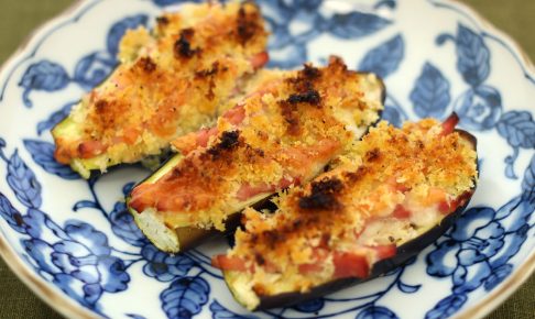 材料(2人分) なす:2本 ベーコン:2枚 溶けるチーズ:適量 パセリ(刻み):少々 A (A)の材料 エキス…