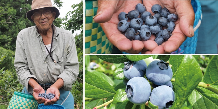 朝早くから畑に出てブルーベリーの収穫を行っているのは、今年85歳を迎えた松石さん。東京ドームひとつ分の広大な畑でブルーベリーを育てています。「冬は剪定、春は摘花、夏は鳥対策と、一年を通して大変な作業が多いブルーベリー。だけど、どんな時も楽しみたいと思っているんです。」と朗らかに語ります。
