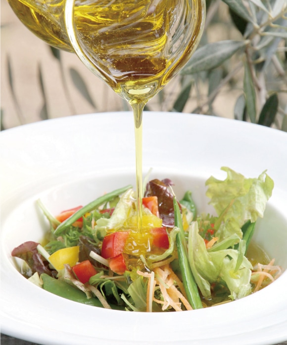 まろやかでコク深い味わいが人気の完熟オリーブオイル。ほのかに感じる辛みが、食材の味を引き立てます。パスタやアヒージョ※にぴったりです。