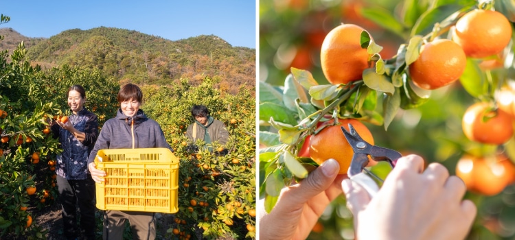 井上誠耕園のみかん畑は南向きの斜面に位置し、陽のひかりをたっぷり浴びて育てています。また、ギリギリまで樹上で熟してから収穫することで、木には負担がかかりますがコクのある美味しいみかんになるのです。