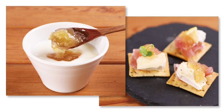 ヨーグルトにかければ、ちょっと華やかな味わいに。クラッカーに乗せるとハムやチーズの塩気とマッチ。パンやサラダと合わせるのもおすすめです。