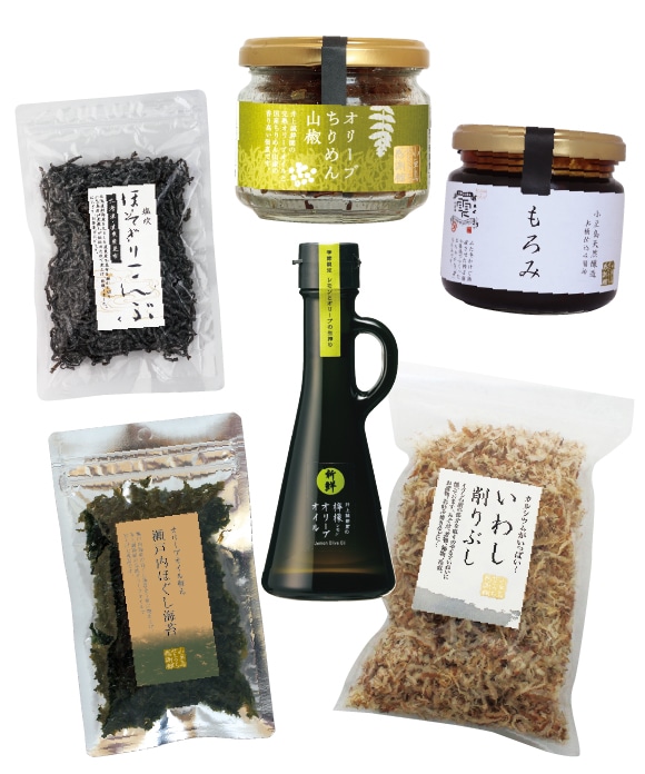 小豆島は「佃煮の島」でもあります。小豆島せとうち感謝館の佃煮商品は、どこにも負けない佃煮づくりに日々励む、島の佃煮職人さんにお願いして、特別に炊きあげて頂いております。瀬戸内海産ちりめんと国産の山椒の実を小豆島醤油で炊きあげ、井上誠耕園の完熟オリーブオイルと合わせました。山椒とオリーブの風味が爽やかに香る、うま味たっぷりの佃煮です。オイル入りだからつやっつやで混ぜやすく、お米にはもちろん、麺や和え物にもおすすめです。