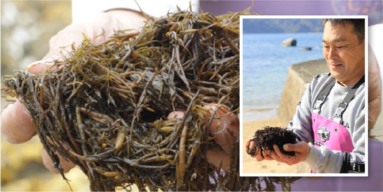 「あかもくは船の上から収穫することもできますが余分なところも収穫してしまうため、海に潜り、自分の目であかもくの状態を確認しながら、収穫しています。