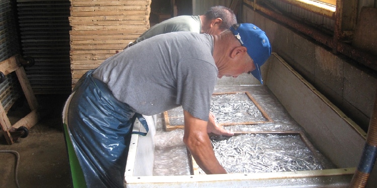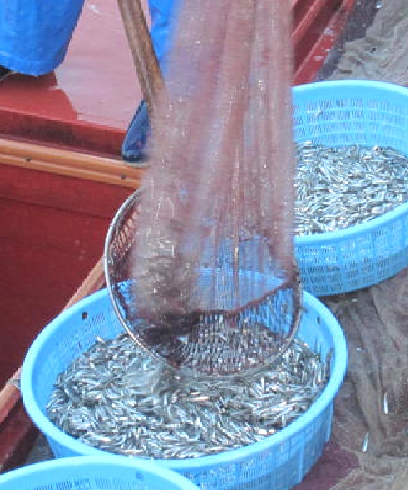 水揚げされたいわしは真水で洗うことによって海水の塩分を和らげ、美味しい田作りに仕上がるように味を調整しています。