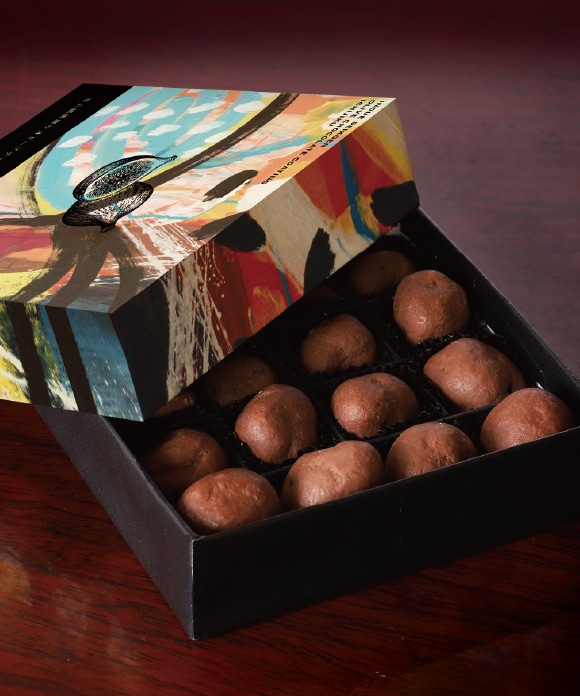 濃厚な甘さが特徴のアルバニア産ドライいちじくを、滑らかな舌触りの井上誠耕園オリジナル完熟オリーブオイル入りチョコレートでコーティング。 美味しさだけではなく、体に嬉しい組み合わせにもこだわって作りました。 贈り物にもぴったりな華やかなデザインの箱でお届けします。
