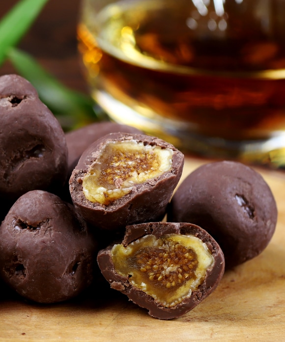 原材料名 ドライイチジク(アルバニア製造)、準チョコレート(砂糖、全粉乳、植物油脂、カカオマス)、オリーブ油/乳化剤、香料、(一部に乳成分、大豆を含む)