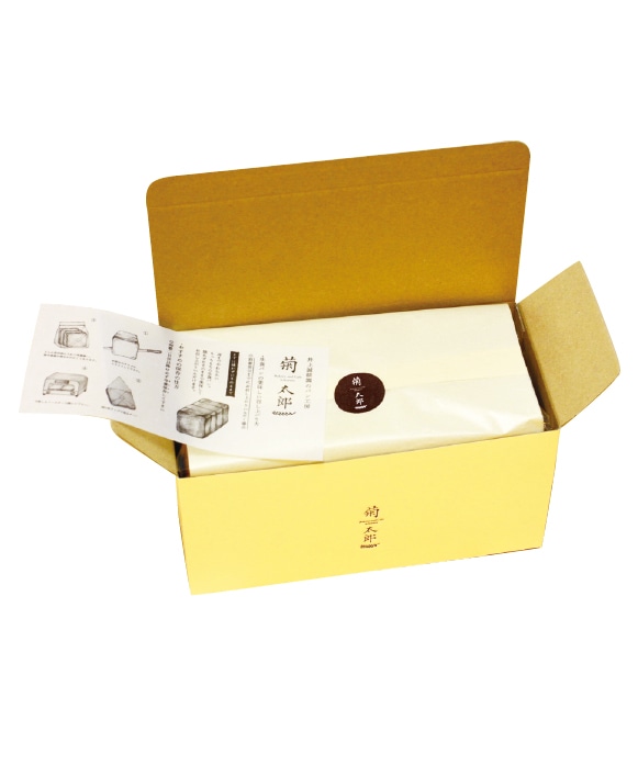 菊太郎の生食パンを最も美味しく食べて頂けるのは、厚めにカットして生で食べていただくこと。お手元に届いたらすぐに、まずはそのまましっとり、もっちりとした食感をお楽しみください。もちろん、トーストしても小麦の香りと甘みがふわっと広がって絶品!