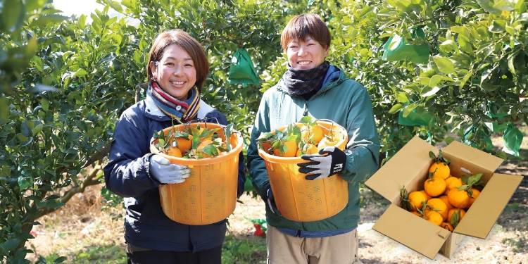 冬に収穫した柑橘を、人の手で「貯蔵」することでおいしい食べごろを見計らってお届けします。井上誠耕園では、デコ柑本来の味わいが楽しめる上質な状態を保つために、果実に袋をかけた状態でお届けしております。