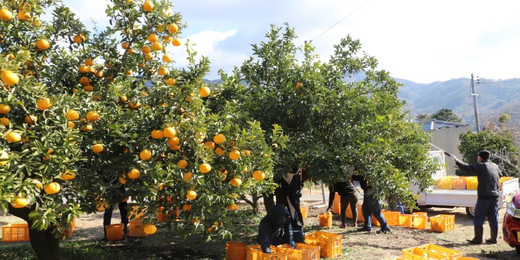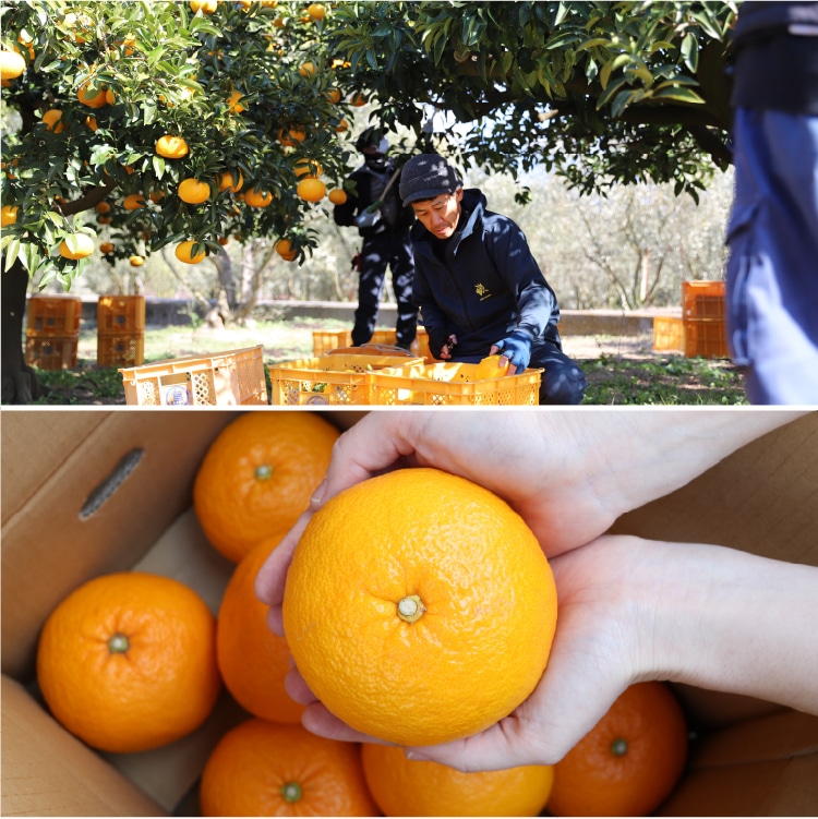 甘夏柑のような中晩柑は、農家の腕が試される柑橘です。冬から春にかけて収穫した柑橘を、人の手で「貯蔵」することで酸味を抜き、最もおいしい食べごろにお届けします。井上誠耕園では、ぷりっと歯ごたえのある美味しい甘夏柑本来の味わいが楽しめる上質な状態を保つために、果実に袋をかけてお届けしております。