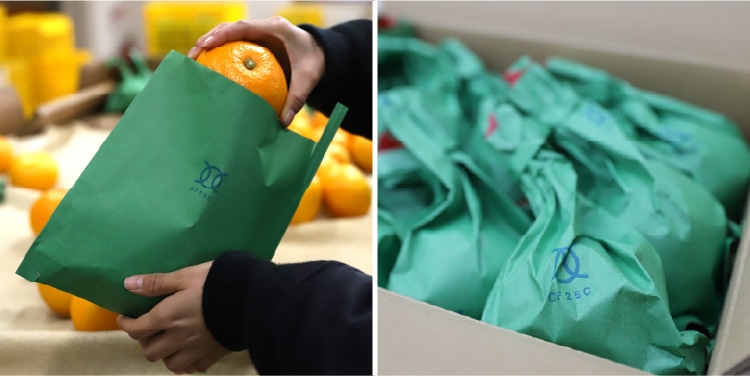 井上誠耕園の甘夏柑の木は、初代園主の時代から大切に受け継いできた古木です。樹勢の強い若い木に比べて、古木に成る果実は味がのり、コクがあるのが特徴です。毎年その年の日射量や雨の量を見ながら一年大切に育てた柑橘も「いかにうまく貯蔵できるか」で美味しさが変わるので「貯蔵」はまさに農家の集大成ともいえる、大切な作業。井上誠耕園では、甘夏柑を一つひとつ特別な貯蔵袋に入れ、適度に水分を保ちながら湿気がこもらないように細心の注意を払い、約3か月大切に寝かせてきました。