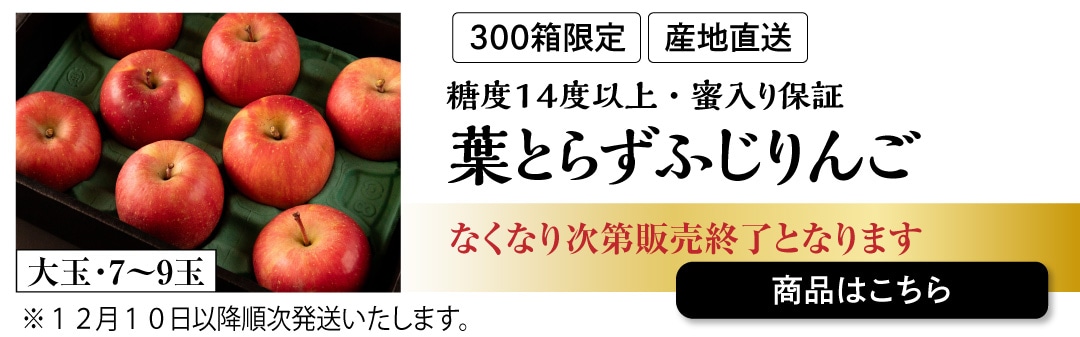 「特選葉とらずふじりんご」はとことん味を「厳選」したりんごをお送りしています。1玉ずつ糖度が測れるセンサー選果機で、低糖のものを取り除き、糖度14度以上の甘いりんごのみを厳選してお届けしておりますので、どのりんごも甘く味わい豊かなりんごをお楽しみいただけます。